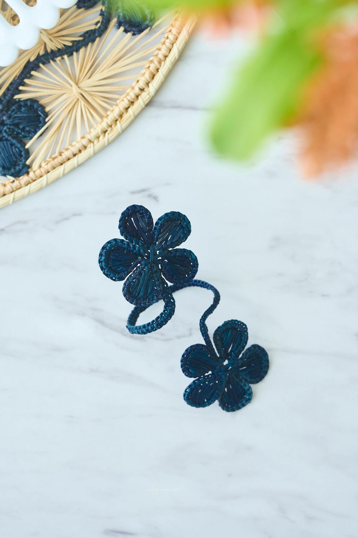 【 ダブルフラワーナプキンリング ネイビー 】